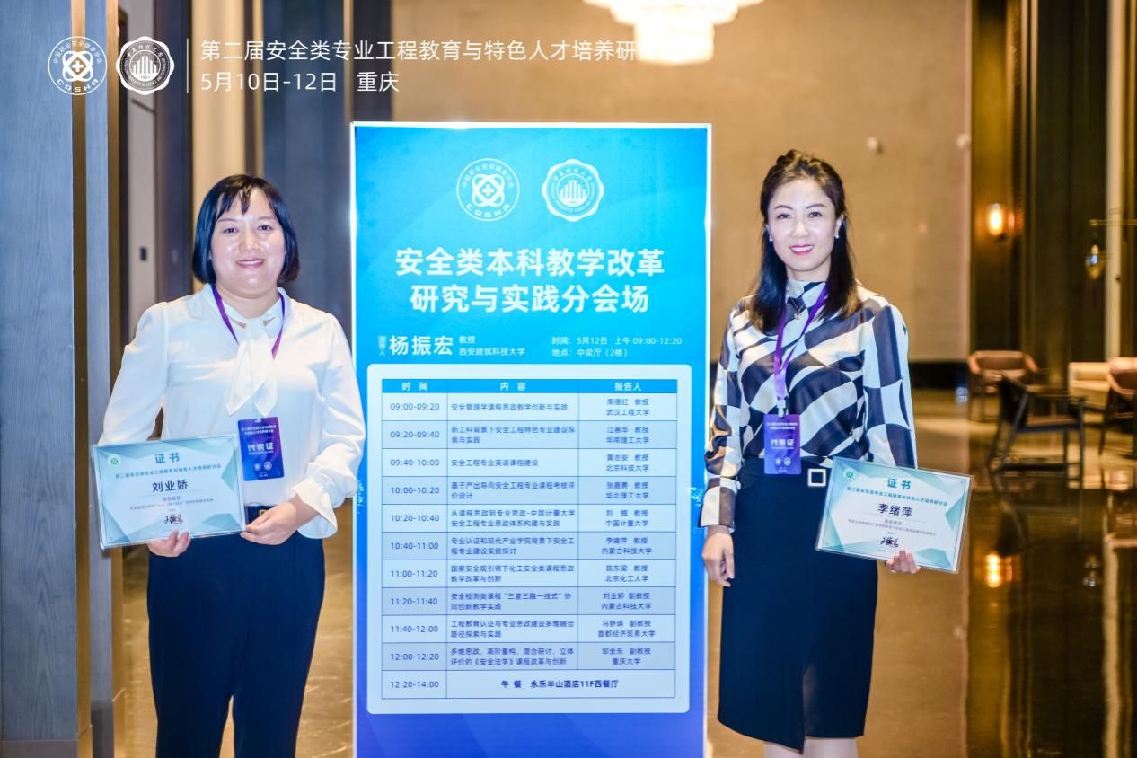 2024年5月10日-12日,第二届安全类专业工程教育与特色人才培养研讨会在重庆召开,bv伟德中国官方网站教师李绪萍、刘业娇、陈景序、任玉辉、张靖参加了会议,其中李绪萍教授和刘业娇副教授发表了大会报告。