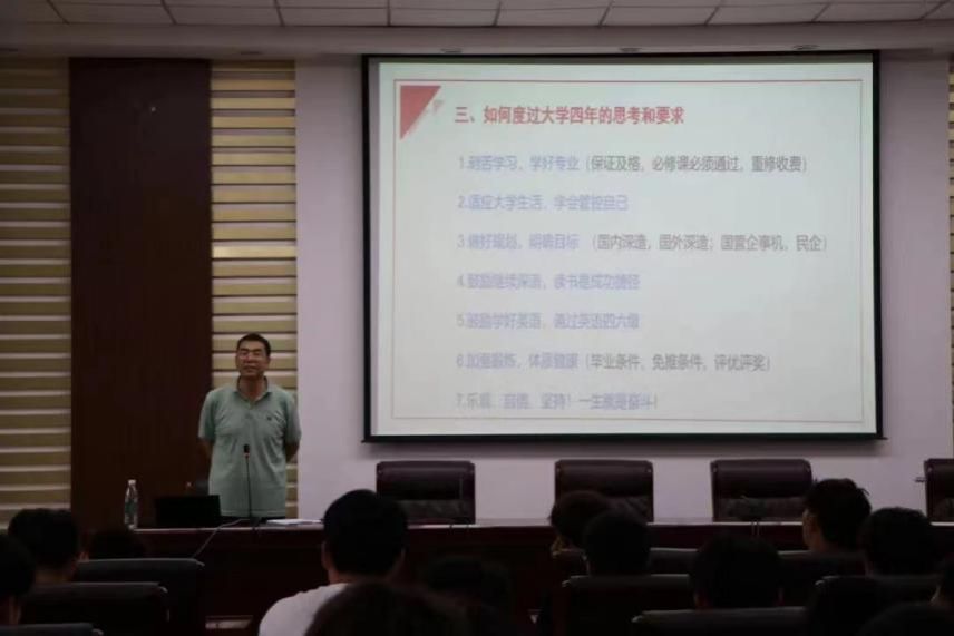 9月8日下午学院院长张光存为同学们进行了一场深刻而精彩的讲座。同时也向各位大一新生介绍了bv伟德官网的人才培养模式与bv伟德官网特色专业与特色优势。他勉励同学们要树立远大理想,厚植爱国情怀,练就过硬本领,不断彰显青春风采,贡献青春力量。