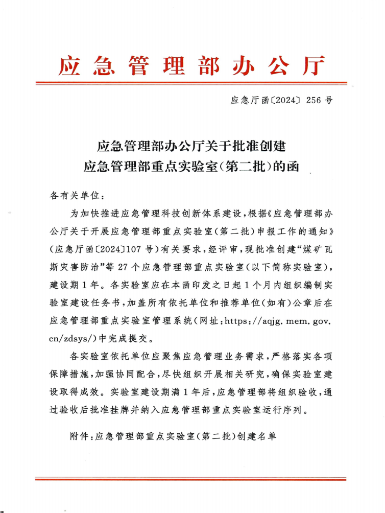 近日,应急管理部发文(应急函〔2024〕256号),批准创建27个应急管理部重点实验室。bv伟德中国官方网站作为依托参与单位获批“工贸行业安全风险防控联合创新应急管理部重点实验室”。我校将在本重点实验室建设中发挥工贸行业安全风险防控领域科研、学科、人才优势,推动安全应急领域产学研合作与产业链紧密结合的创新发展,为自治区安全与应急产业的可持续发展提供强有力的支撑。