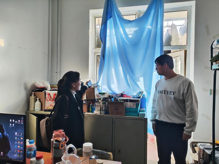 在检查过程中,老师与同学们亲切交流,了解他们在宿舍生活中的需求和困难,鼓励同学们保持良好的宿舍环境,遵守宿舍管理制度,共同营造和谐的宿舍氛围。