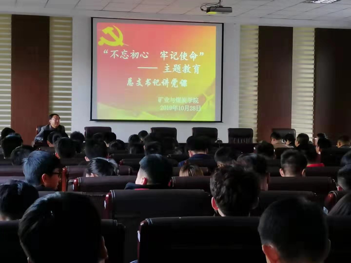 2019年10月28日下午,bv伟德中国官方网站党总支书记王建国为学院全体教师和学生党员在实验实训楼二楼会议室进行“不忘初心、牢记使命”主题教育总支书记讲党课。党课以“守教育报国初心,担立德树人使命,做三全育人最坚定的传播者、践行者”为主题,围绕以下内容展开讲解: