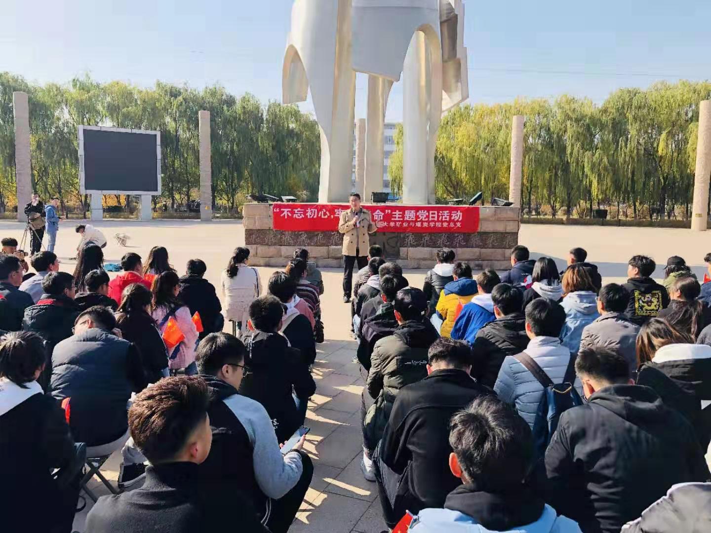 2019年10月26日上午,bv伟德中国官方网站组织全体学生党员到北方兵器城开展庆祝中华人民共和国成立70周年“不忘初心、牢记使命”主题党日活动,学院党总支组织委员、学生党支部书记胡显峰老师为学生进行主题党日教育现场讲党课。党课主要围绕以下内容展开讲解: