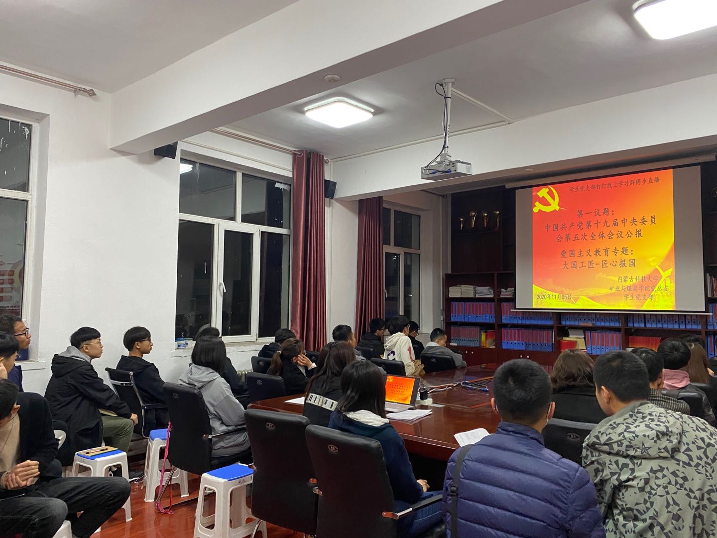 为大力弘扬和培育工匠精神,认真学习“大国工匠”坚韧不拔的意志品格和追求卓越的职业精神,bv伟德中国官方网站党总支于2020年11月05日晚上19:30,在临曦楼二楼党员之家线上线下同步开展专题理论学习活动。本次学习内容是:第一议题:学习中国共产党第十九届中央委员会第五次全体会议公报;爱国主义教育专题:观看《大国工匠-匠心报国》视频。