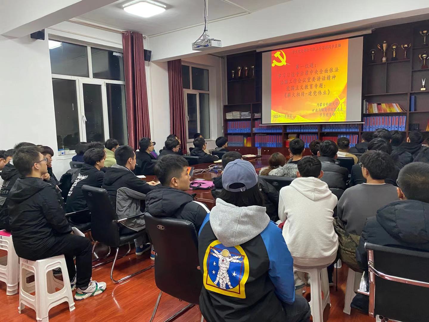 为大力弘扬爱国主义精神,bv伟德中国官方网站党总支于2020年11月19日晚上19:30,在临曦楼二楼党员之家线上线下同步开展专题理论学习活动。本次学习内容是:第一议题:学习习近平出席中央全面依法治国工作会议重要讲话精神;爱国主义教育专题:观看《薪火相传-建党伟业》视频。