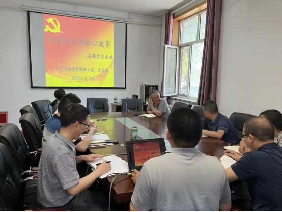 6月23日,教工第一党支部在学院办公楼102会议室召开支部党员会议,开展庆“七一”系列主题活动之“听老党员讲初心故事”。