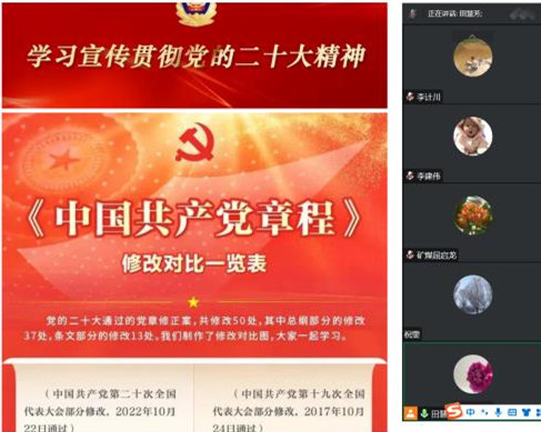 为深入贯彻党的二十大精神,2022年12月19日晚上7:30,bv伟德中国官方网站教工第一党支部于组织腾讯会议支部书记专题党课,学习《中国共产党章程》。会议由支部书记田慧芳领学。