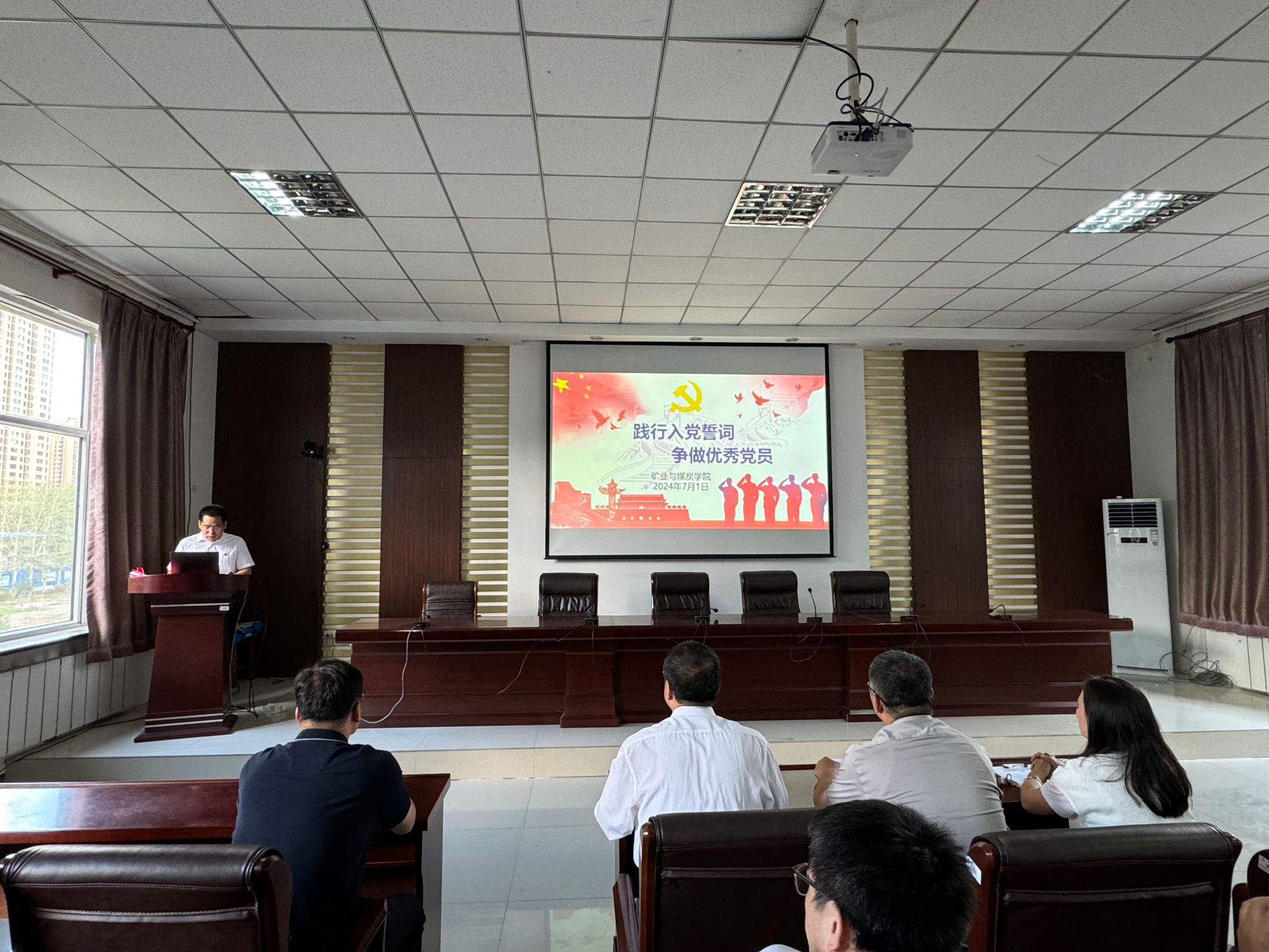 7月1日下午,bv伟德中国官方网站在学院实训实验楼二楼会议室举行2024年“践行入党誓词争做优秀党员”新入党党员宣誓暨党员教育活动。学院领导、本学期32名新入党党员及师生党员参加次活动,活动由学院组织员李计川主持。