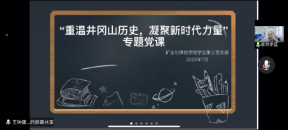 2022年7月3日下午3:00,bv伟德中国官方网站学生第三党支部于腾讯会议平台召开党员党课学习,本次学习的主题是:重温井冈山历史,凝聚新时代力量。领学人:闫妍同志。