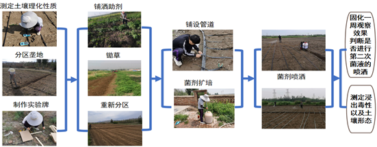 (2)金矿尾矿无混凝土微生物固化、尾矿堆周边高盐碱土壤MICP稳定重金属技术工程示范