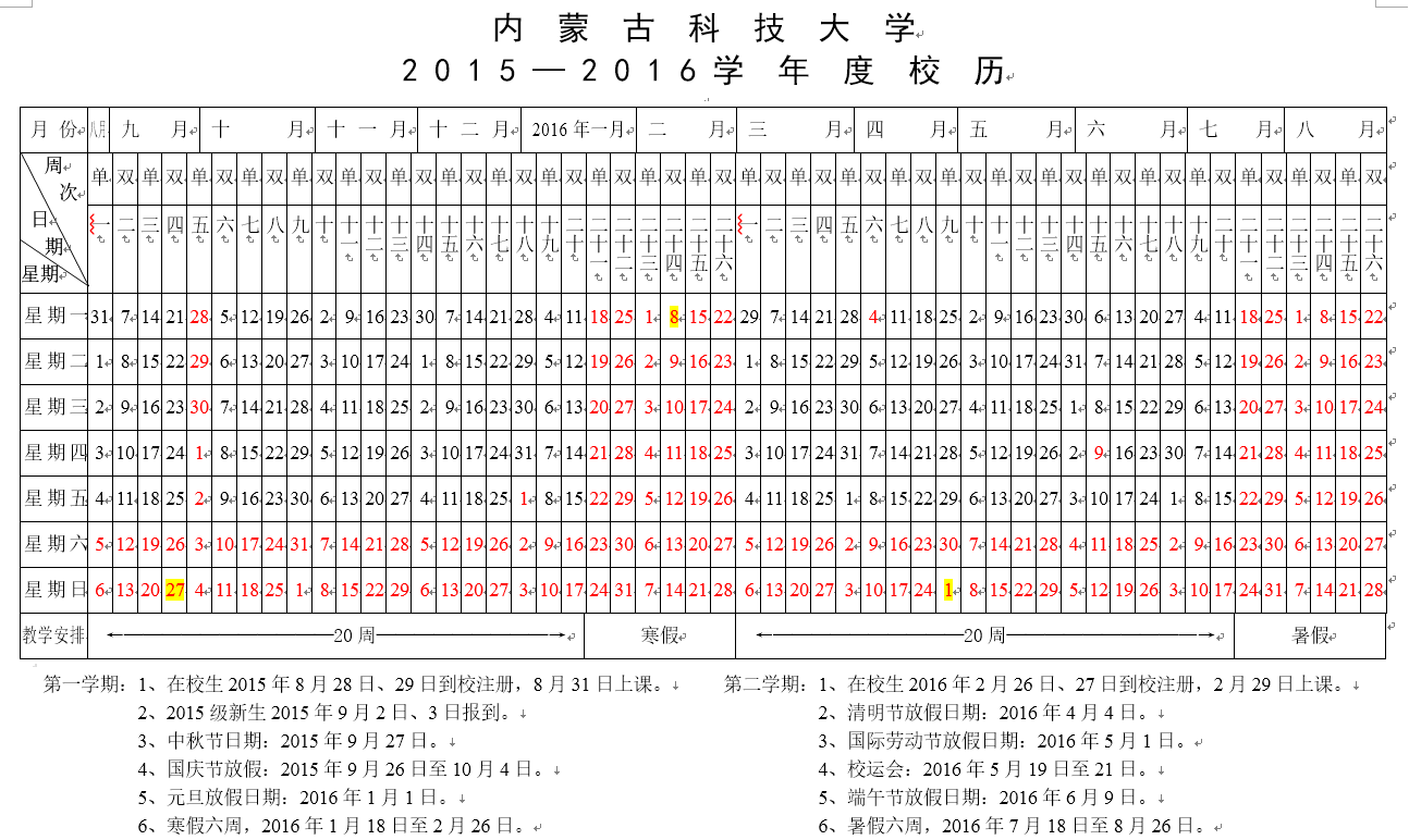 bv伟德中国官方网站2015-2016学年度校历