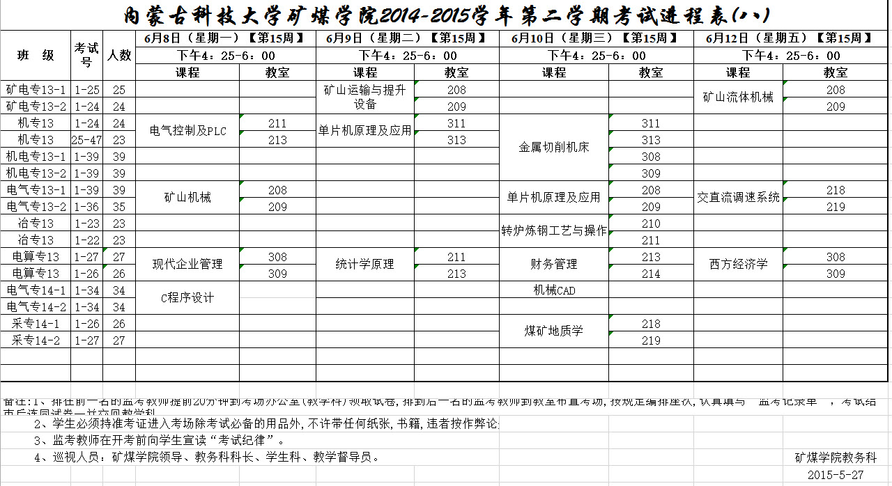 矿煤学院(高职)14-15(2)考试进程表(八)